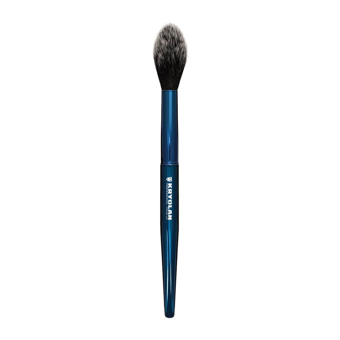 Our Blue Master Precision Powder Brush is a brush kit essential; The long, oval bristles quickly bring life to the skin with powder blush, bronzer and highlighter. The perfect brush for quick on-set touch ups with the Kryolan Blot Powder or Dual Finish. Vegan certified.