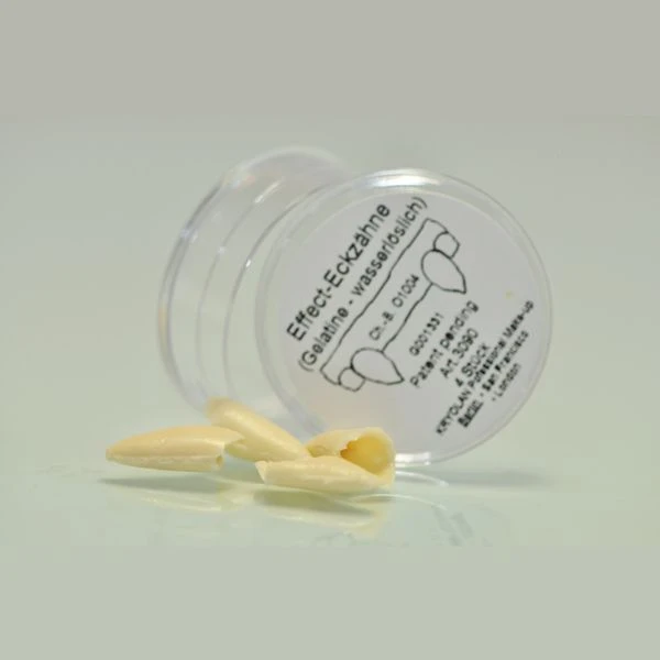 Set of four gelatin fangs for fancy dress. Soften in the mouth with saliva and apply to the teeth.