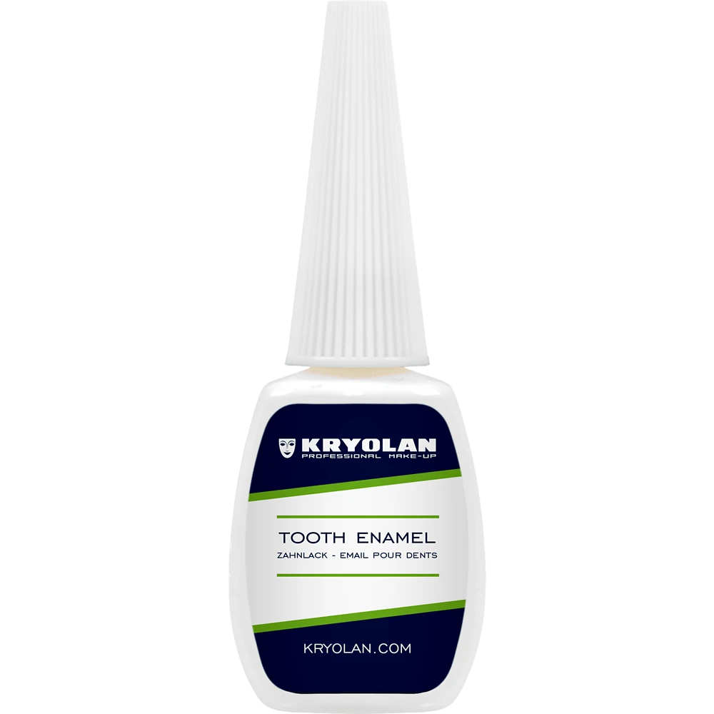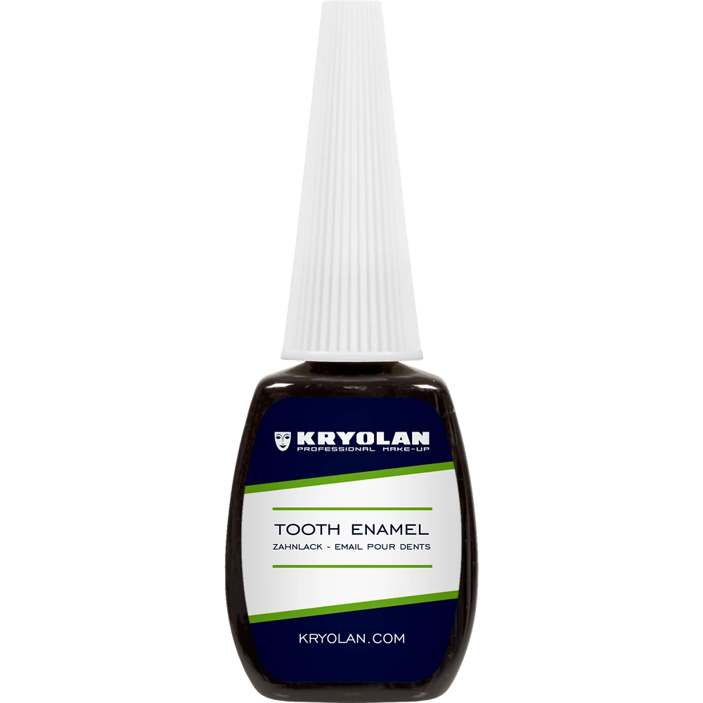 If you have ever seen a ‘blacked out’ tooth it’s most likely Kryolan. Apply to a dry tooth to create your desired effect. Try using two colours together to create a more realistic look. Maybe nicotine around the gum-line and in-between teeth and try the black tooth enamel on the edge of a tooth to make it appear broken.