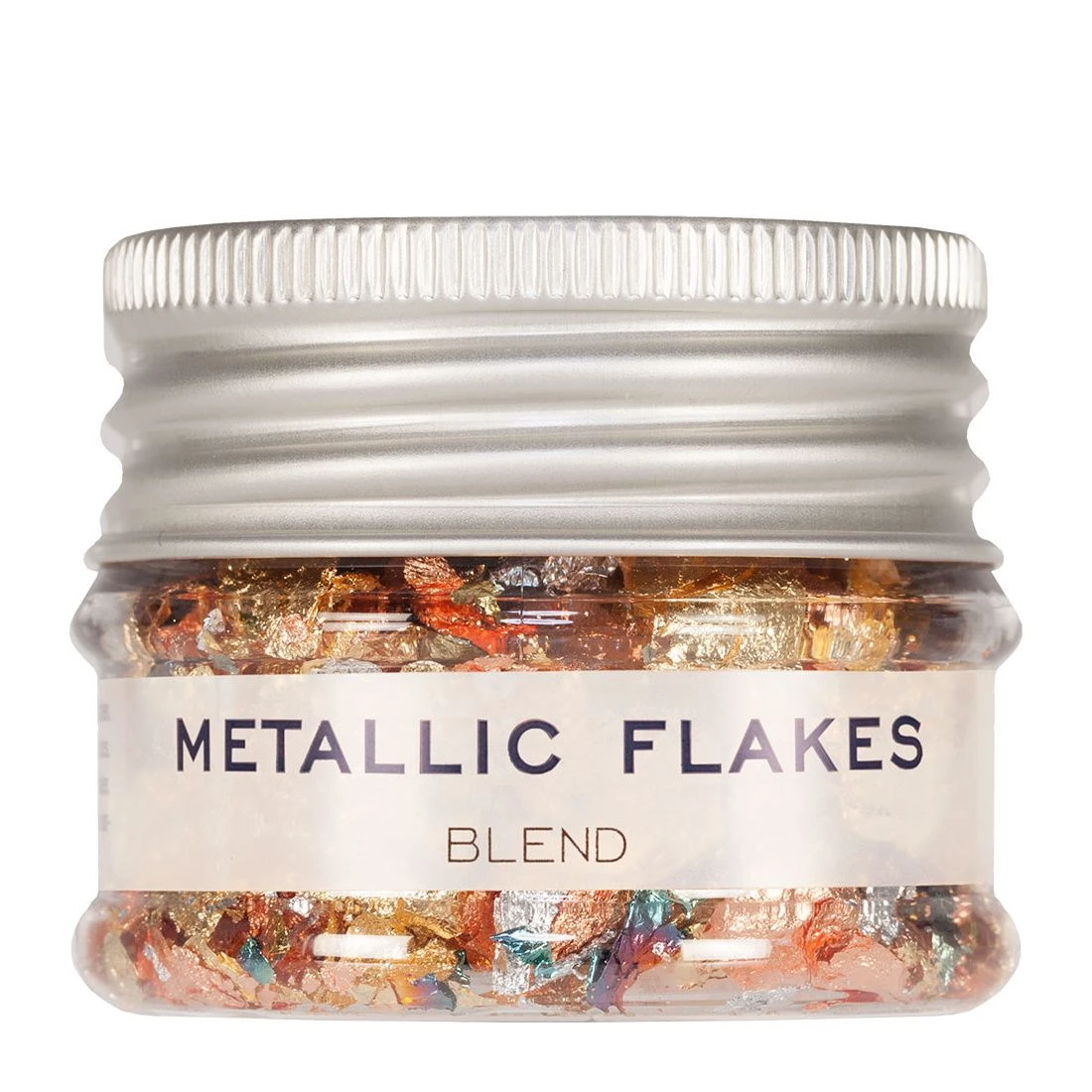Metallic Flakes are very fine metal flakes to decorate artificial surfaces. Use Hydro Spirit Gum, Multi Gel or any grease foundation as a base to adhere Metallic Flakes.